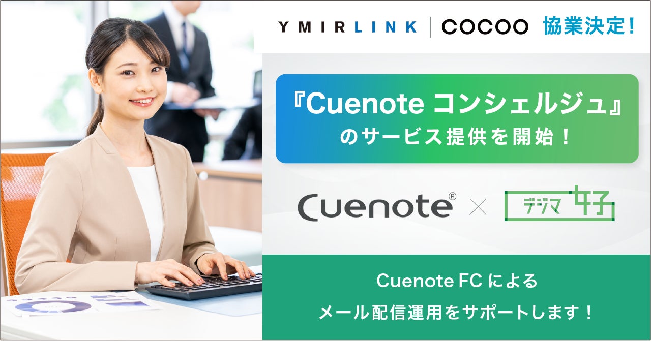 「人財」×「デジタル」事業で社会のDX化を支援するコクー株式会社(本社:東京都千代田区、代表取締役CEO:入江 雄介)は、国内トップクラスの配信実績を有するメール配信システム「Cuenote FC(キューノートエフシー)」を開発・運営するユミルリンク株式会社(所在地:東京都渋谷区、代表取締役社長:清水 亘)と業務提携し、「Cuenote FC」の導入から運用、デジタルマーケティング業務のサポートまでを当社のDX人財「デジマ女子(R)」がサポートする「Cuenoteコンシェルジュ」のサービス提供を開始いたします。