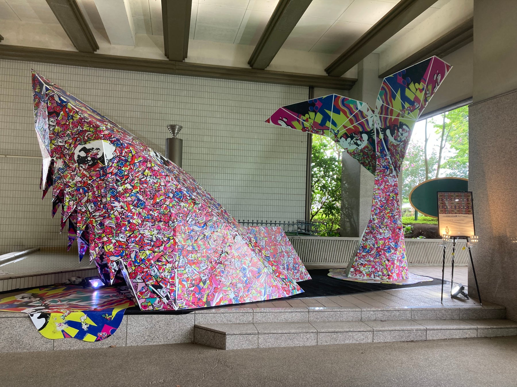 さらに、ひたちなか市にあるホテルクリスタルパレスでは、Fantasista Utamaro氏によるビジュアルコンセプト「Lucky曼荼羅」をモチーフとし、翼のゲート前に設置されていたサメとクジラが融合したシンボルオブジェを現在展示中です。フレンズの皆さんが様々な想いを込めて貼ったLucky曼荼羅のシールにより、まさに世界に一つのアートとなっています。こちらもぜひご覧ください。
