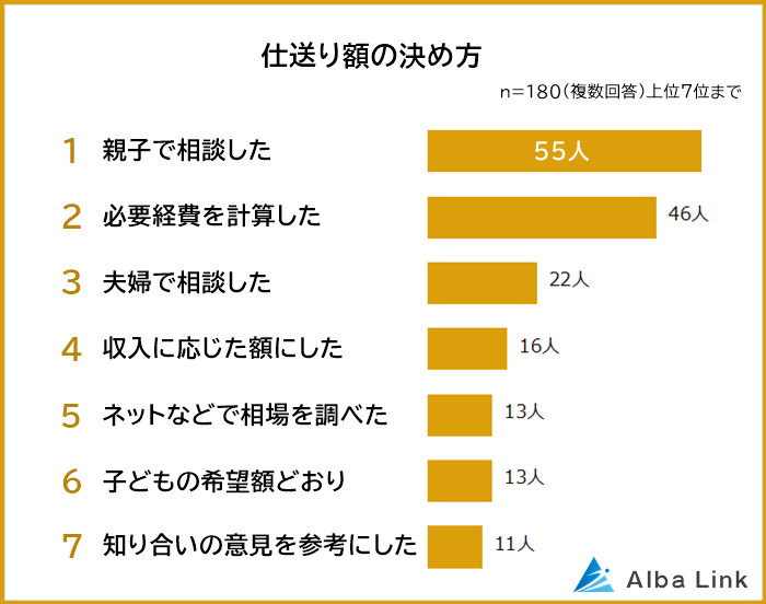 最後に「仕送りする額をどのようにして決めたか」を親御さん180人に聞きました。