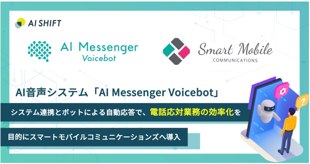 AI対話カンパニーとして対話のDXを推進する株式会社AI Shift(本社:東京都渋谷区、代表取締役社長:米山結人)は、AI自動音声対話システム「AI Messenger Voicebot」が、電話応対の業務効率改善に向けて、スマートモバイルコミュニケーションズ株式会社(本社:東京都新宿区、代表取締役社長 :鳥越 洋輔、以下 スマートトモバイルコミュニケーションズ)に導入されたことをお知らせします。