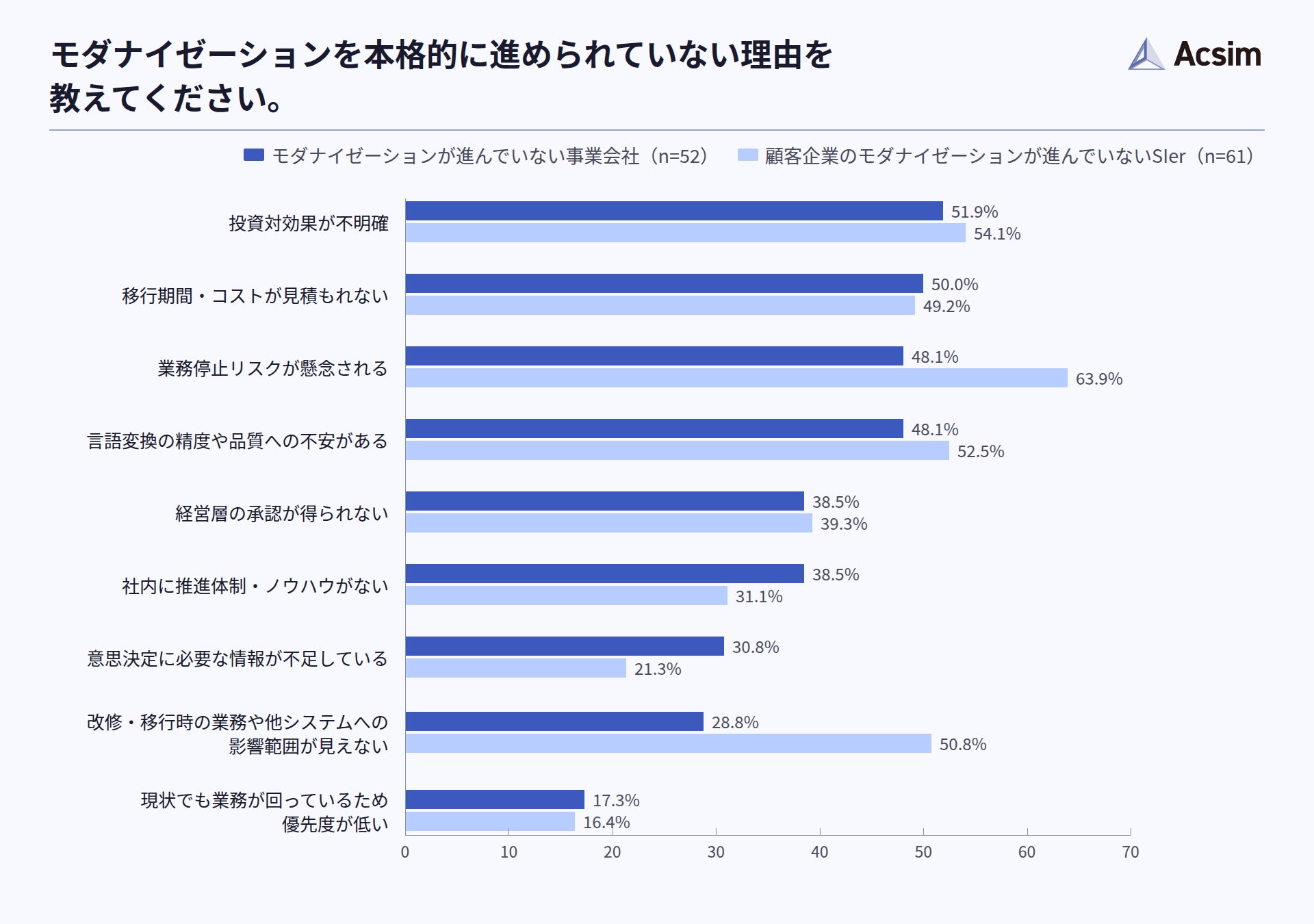本調査から、モダナイゼーションは多くの企業において「必要性は認識されているものの、実行に踏み切れていない」状態にあることが明らかになりました。