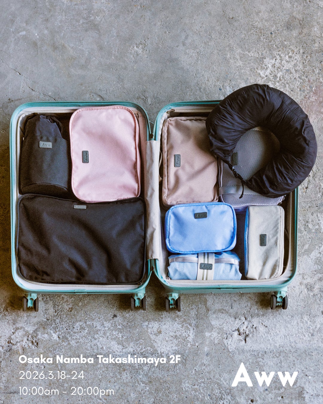 トラベルアイテムを展開するAww(アウ)は、2026年3月18日(水)から3月24日(火)の期間、大阪髙島屋2階 旅行用品売場にてポップアップストアを開催いたします。