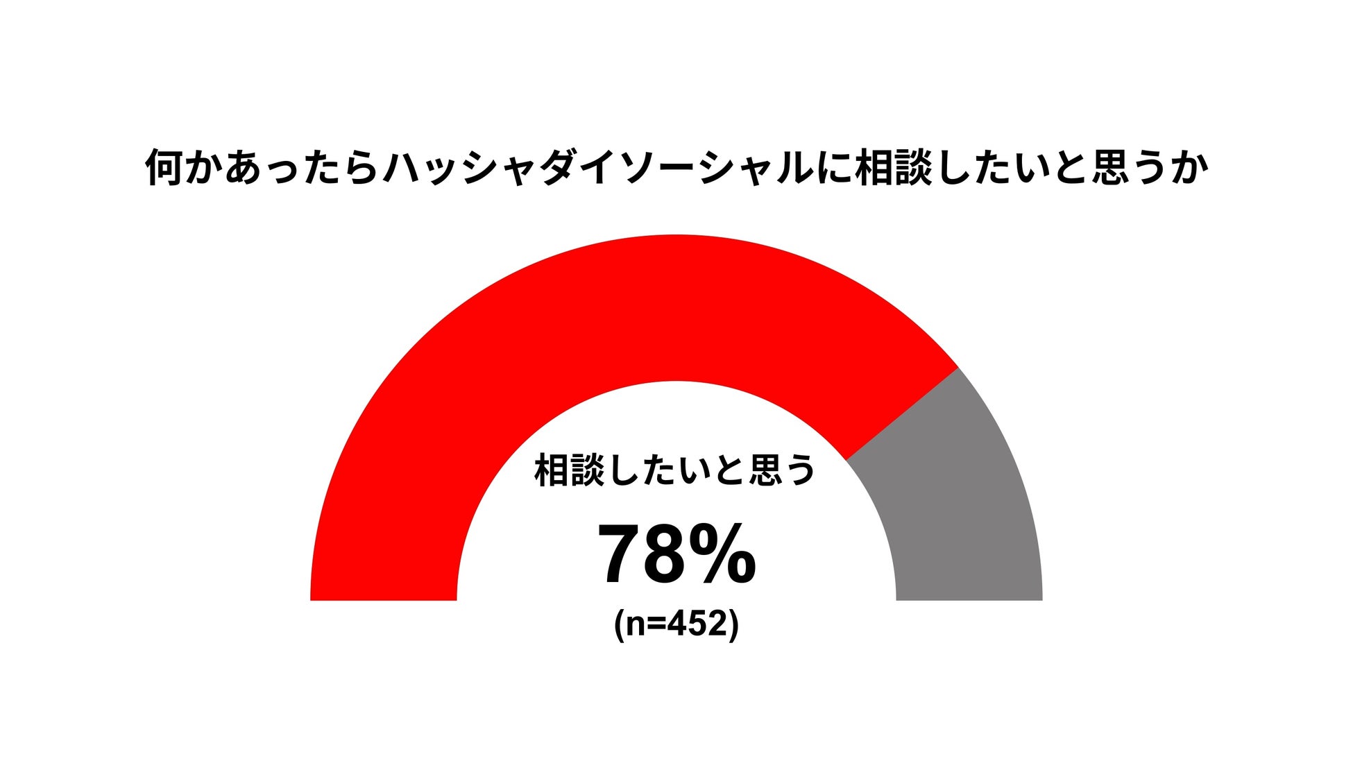 1.「 ハッシャダイソーシャルに相談したい」78%