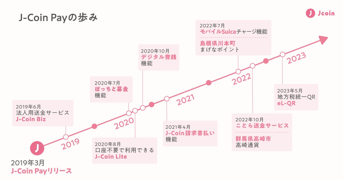 おトク・便利・地域応援を軸に、各種機能の追加および施策を実施してきました。お金を「送る」「もらう」「支払う」といった行為にとどまらず、給付・納付・募金・賽銭といった様々なシーンでの価値のやりとりをスマートフォン決済で実現すべく、J-Coin Payの利用範囲を広げています。