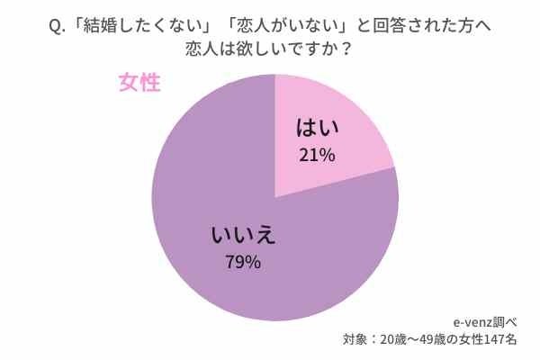 恋人を作る=結婚という考えなのでしょうか。経済的・精神的に自立していたり、仕事や趣味を優先させたいと考えている人は、結婚もしたくないし、恋人もいないという状況になるのかもしれません。