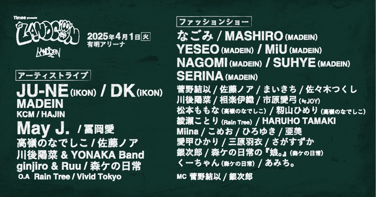 株式会社LANDは2025年4月1日(火)東京有明アリーナにてZ世代カルチャーを徹底的に深掘りした唯一無二のフェスティバル「Timee presents LANDCON(タイミープレゼンツランドコン)」を開催致します。