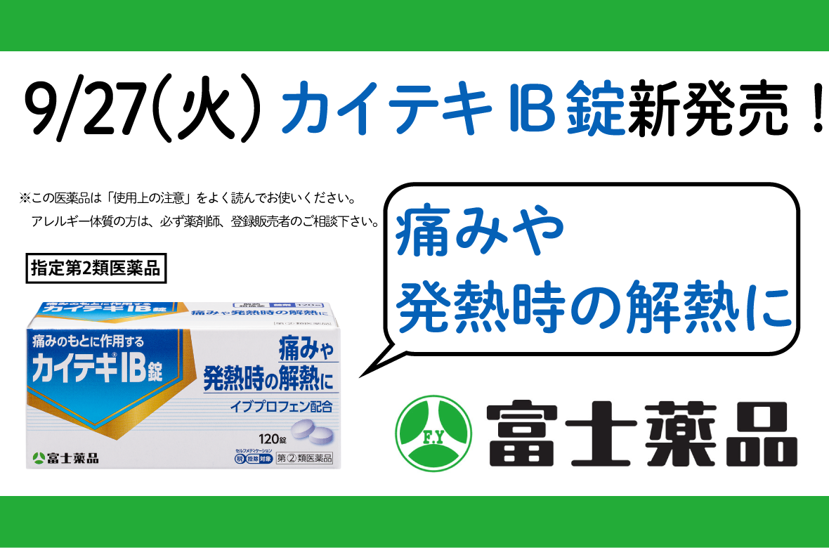 熱・痛みのもとに作用するイブプロフェン配合解熱鎮痛薬「カイテキ® IB錠」を9/27(火)新発売!