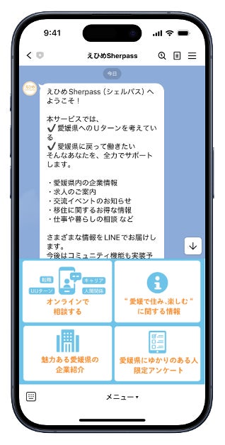 就業支援におけるGovTechを推進する株式会社Compass(本社:兵庫県神戸市中央区、代表取締役CEO:大津 愛、以下、Compass)は、愛媛県と連携し、関西圏で働く愛媛県出身の若手社会人を対象としたUターン支援サービス「えひめSherpass(シェルパス)」を、2025年9月26日より提供開始しました。本サービスは、Compassとして初めてのUターン支援サービスであり、SNSを活用したオンライン相談を軸に、生活やキャリアに関する相談から、職業紹介、就業、定着までを一貫して支援することで、若者が安心して地元で働ける環境の整備を目指します。