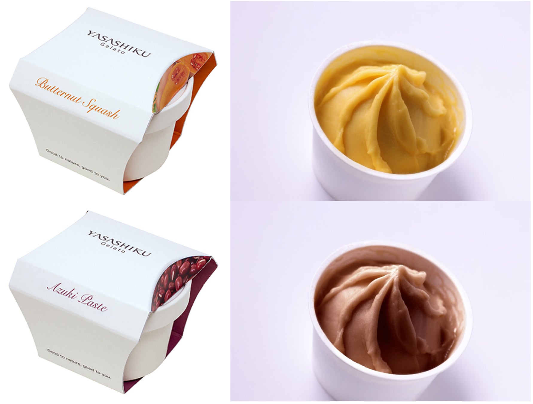 老舗の醤油製造会社が手がけるサステナブルスイーツ「YASASHIKU Gelato(やさしく ジェラート)」新フレーバー「バターナッツかぼちゃ」と「小豆あん」を詰め込んだセット3月1日より発売開始!