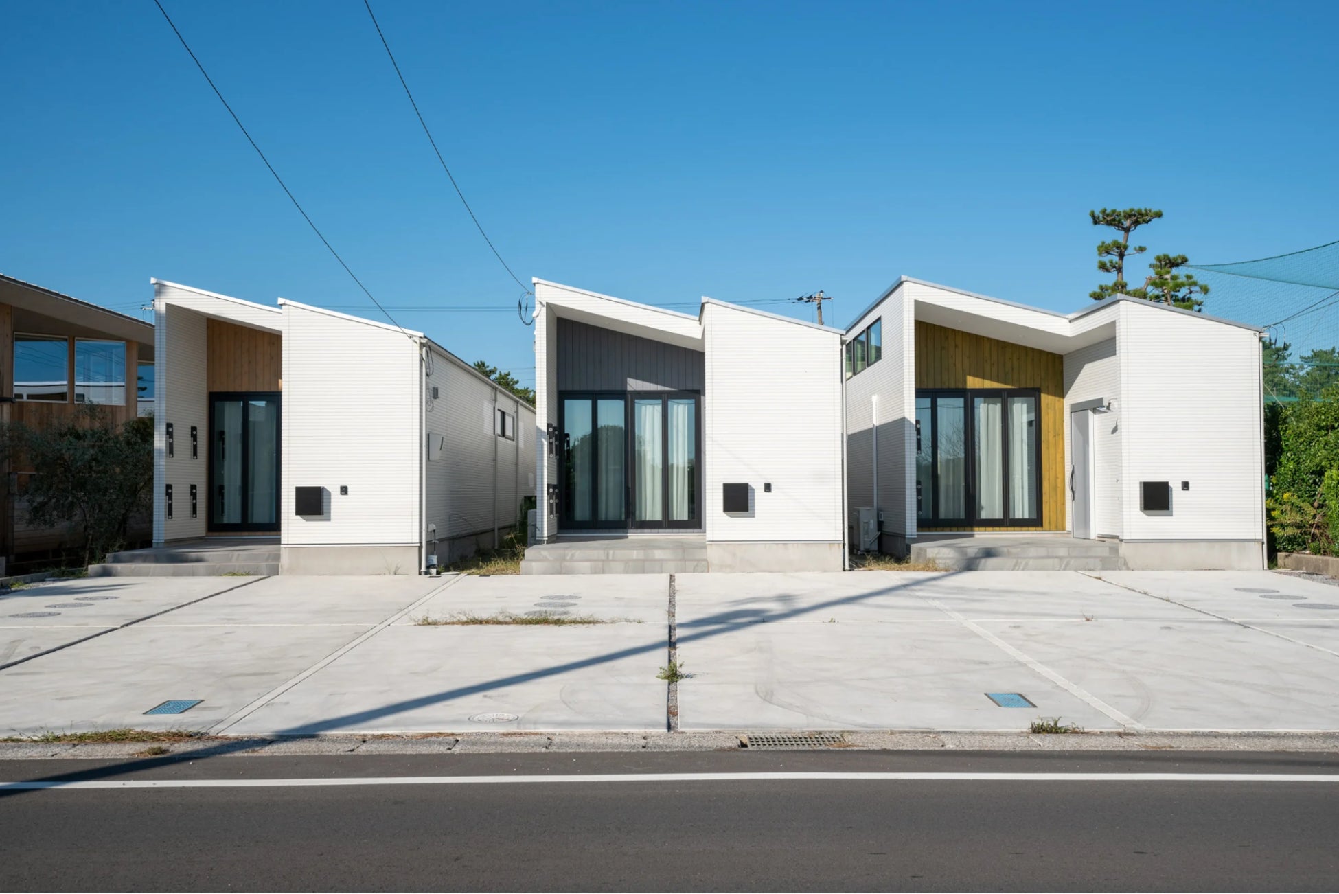 WITH SEA一宮NORTHは、サーファーの聖地・千葉県一宮町に佇む、海と自然を満喫できる滞在施設です。3棟が並ぶスタイルで、3棟を同時予約すれば最大15名まで宿泊可能です。