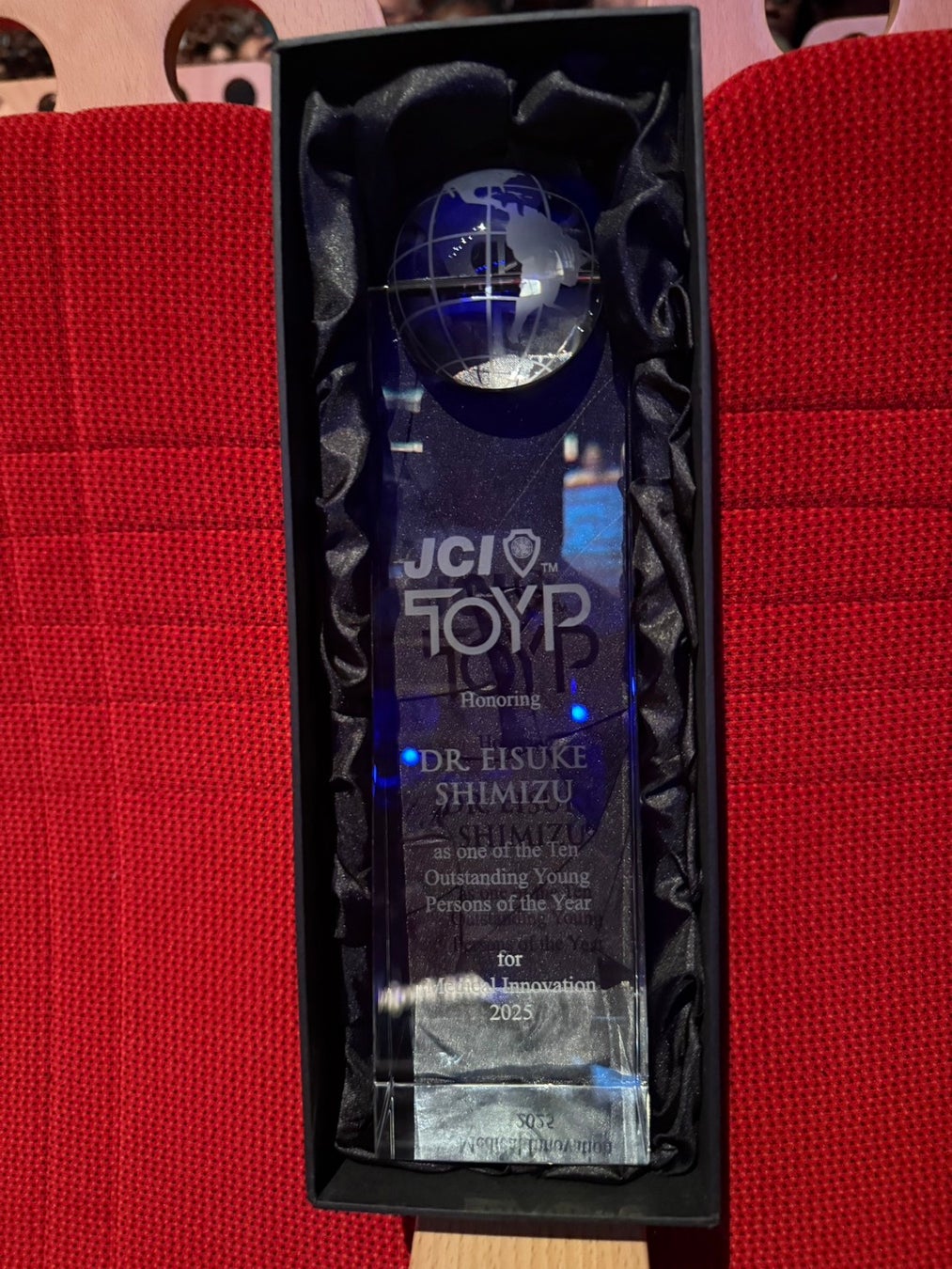 本年のJCI TOYPの日本代表として、清水は日本人として唯一、また医療イノベーション分野で選ばれた世界10名の1人として受賞いたしました。