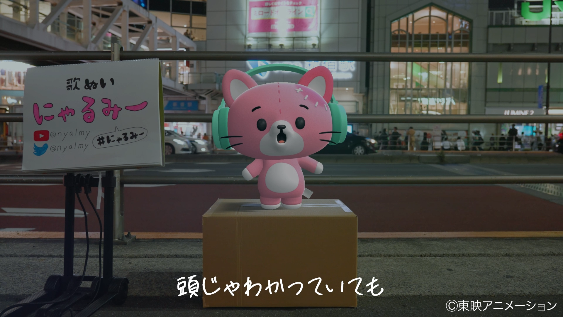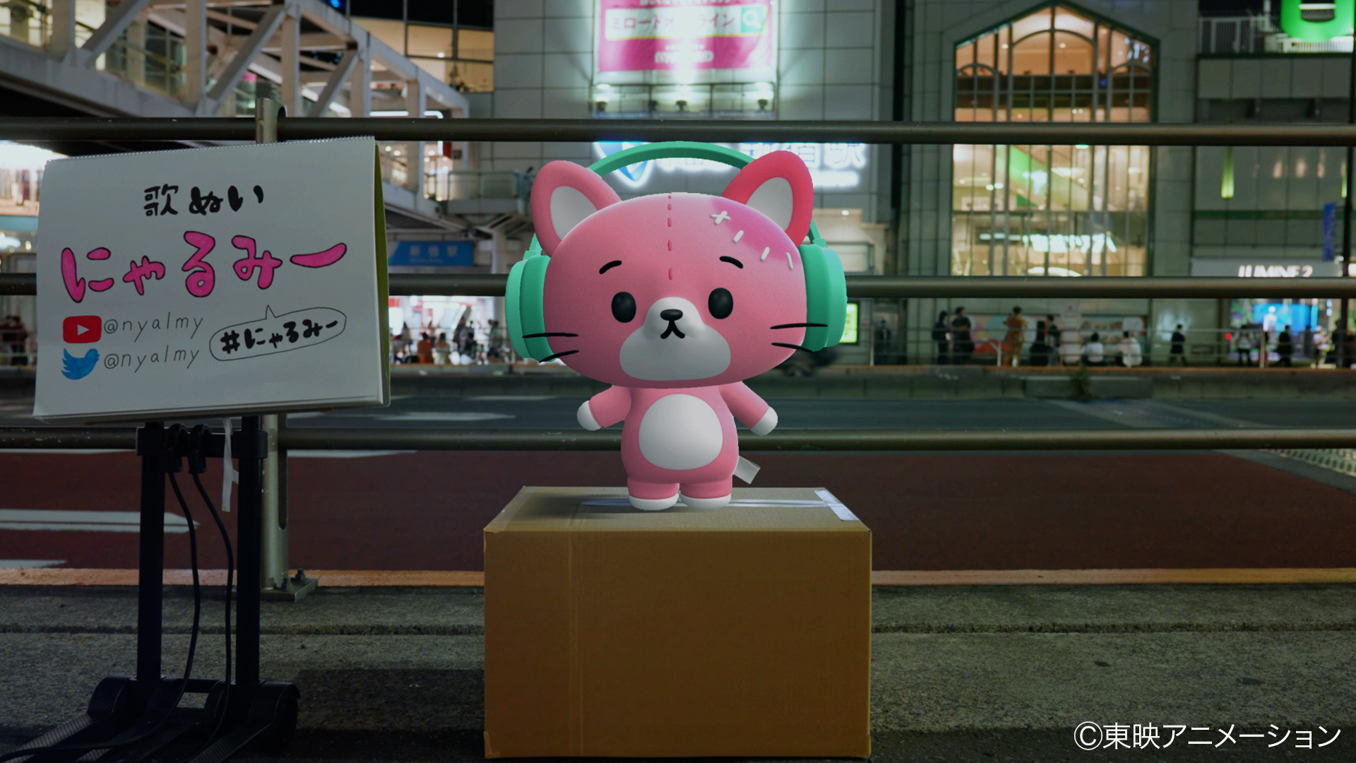 「歌ぬい にゃるみー」は、YouTube上で展開するぬいぐるみ「にゃるみー」による路上ライブをメインとした歌動画コンテンツで、東映アニメーションのオリジナルの実験的なキャラクターとしてスタートしました。見た目のかわいらしさとは裏腹に、どこか寂しさも感じさせるぬいぐるみが路上ライブをする物語です。