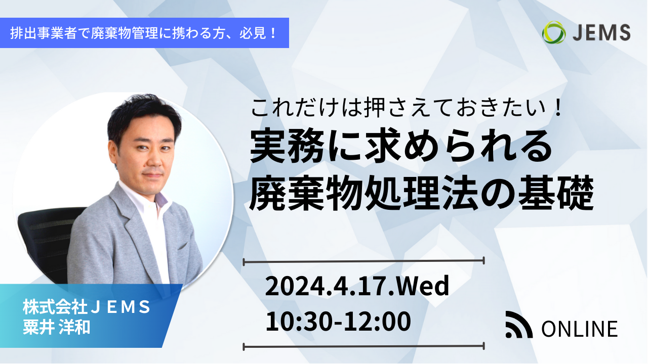【4/17(水)開催】これだけは押さえておきたい!実務に求められる廃棄物処理法の基礎(無料オンラインセミナー)