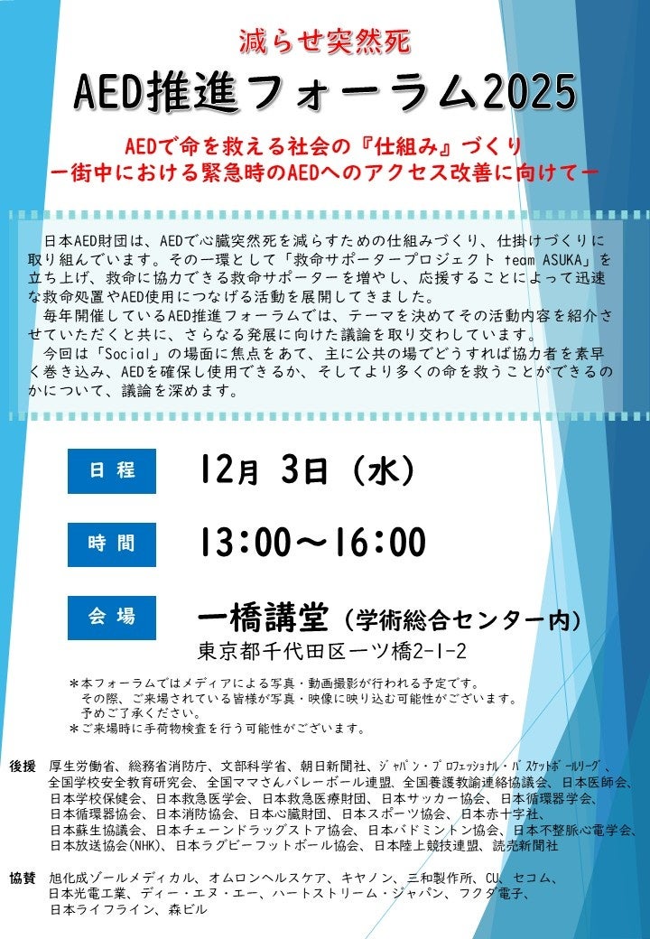 減らせ突然死 AED推進フォーラム2025を開催いたします
