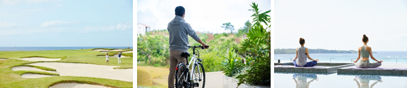 リゾートホテルで暮らす30日間は、客室から恩納村の蒼い海が見えるフルフラットのワイドテラスでのひとときを満喫したり、プールやフィットネスルームでリフレッシュしたり、近隣ゴルフ場でプレイを楽しんだり、琉球文化を体感するプチ旅に出るのもおススメです。また、無料貸出しの電動アシスト付きクロスバイクで海辺の道をサイクリングしたり、館内アクティビティやサックスなどの音楽ライブを鑑賞したり、長期滞在でも飽きることのない、ここにしかないさまざまな体験と、ホテルならではのサービスとおもてなしで、心も体も寛ぐ特別な時間をお過ごしくださいませ。