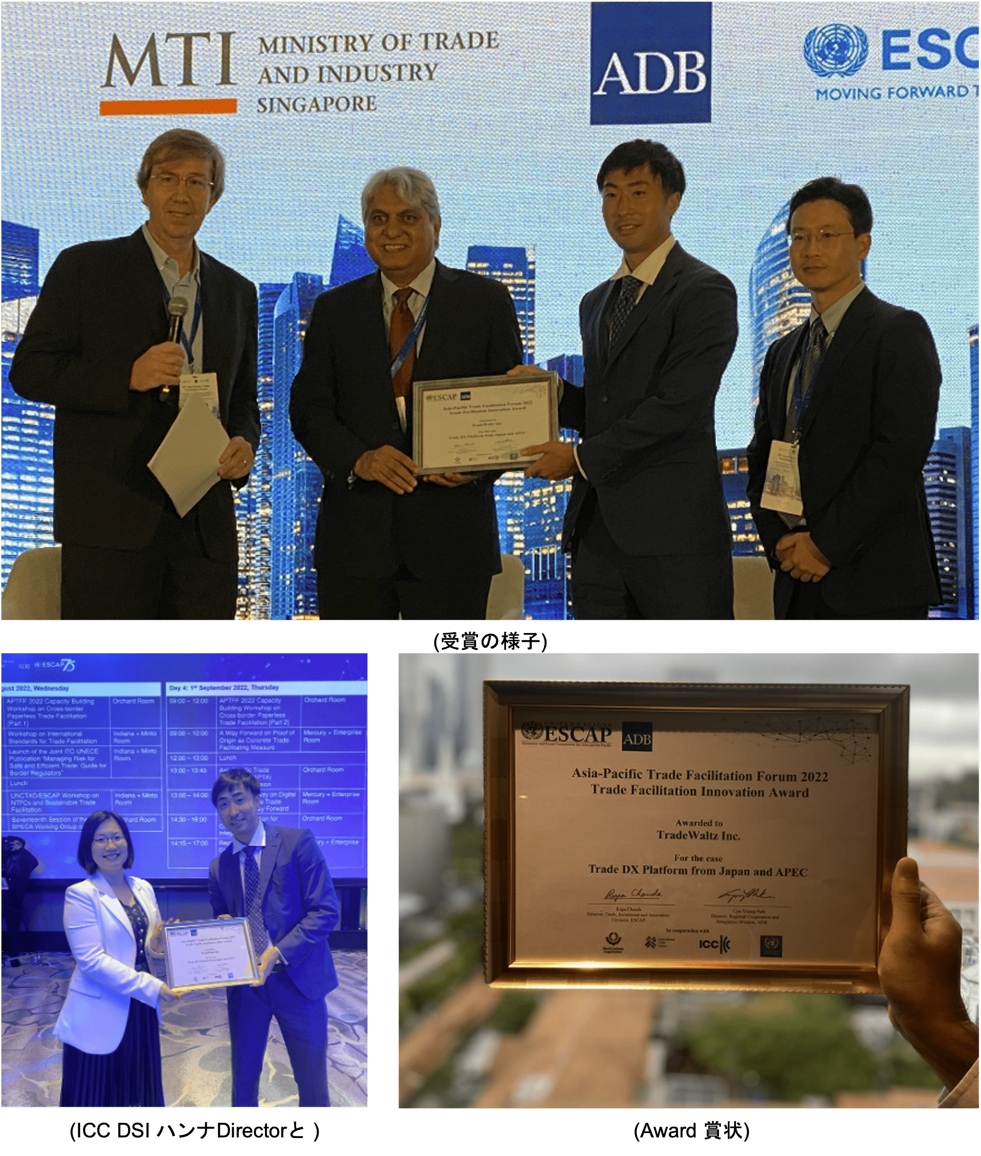 世界中から提出されたイノベーション事例をAPTFF事務局のほか、国際商工会議所(ICC)、国際貿易センター(ITC)、国連貿易開発会議(UNCTAD)、世界税関機構(WCO)、アジア太平洋地域のペーパーレス貿易・輸送に関する国連専門家ネットワーク(UNNExT)諮問委員会から招かれた専門家が評価した結果、トレードワルツを含む数事例がイノベーションアワード2022に認定されました。