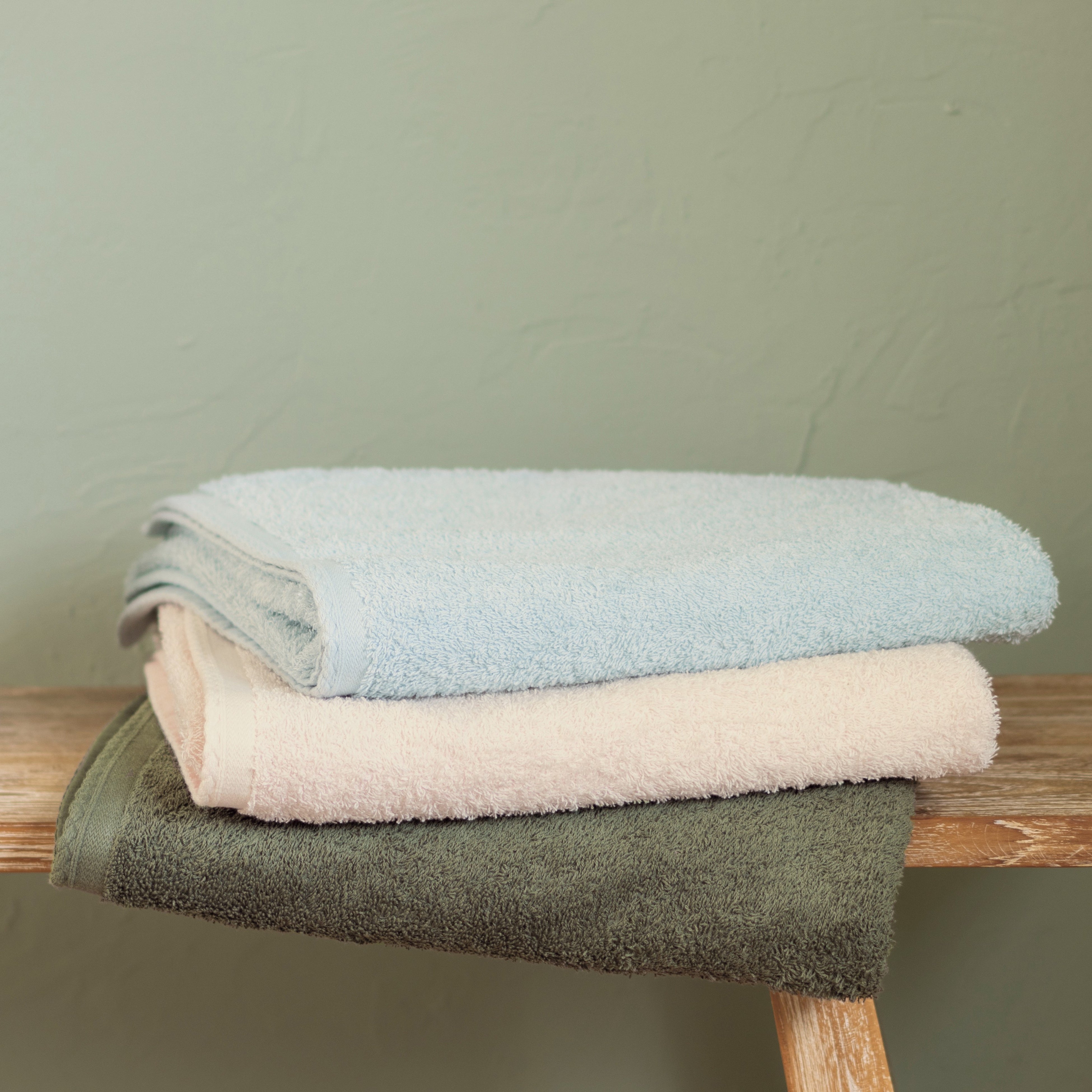 ヨコ糸に回収したタオルから紡いだ「リサイクルコットン糸」を、パイルにはオーガニックコットンを使用して織り上げたタオル。特許取得済の独自のロングパイル組織により、一般的なタオルよりもパイル糸が抜けにくく、耐久性に優れています。