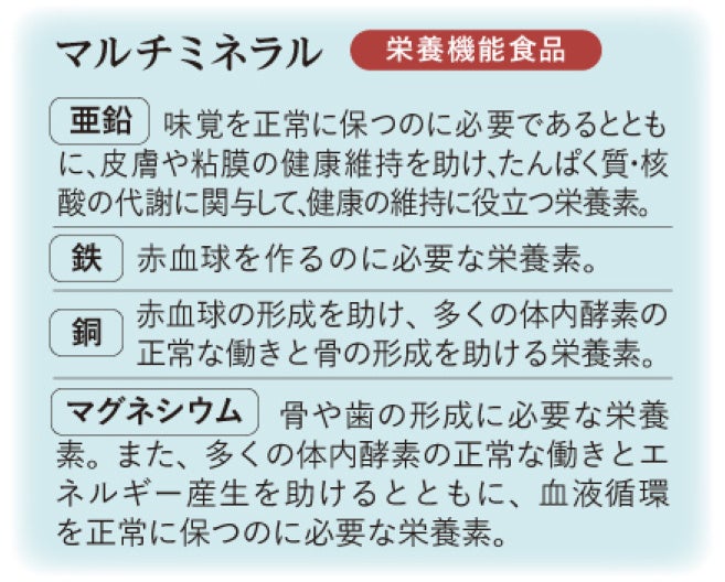 2023年4月新発売!現代人に不足しがちな必須ミネラル6種類をバランスよく配合した栄養機能食品<マルチミネラル>