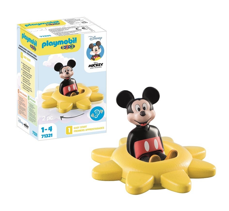 ミッキーのフィギュア、ガラガラと音を立てて回転するたいようのセットです。