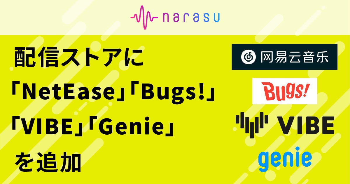 音楽配信代行サービス「narasu(ナラス)」が、「NetEase」や「Genie」など中国・韓国で影響のある4つの音楽配信サービスへの楽曲登録に対応!