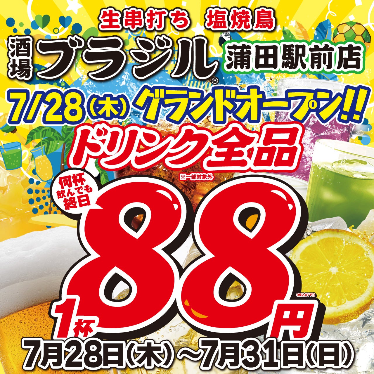 - 7月28日(木)NEWOPEN『酒場ブラジル 蒲田駅前店』