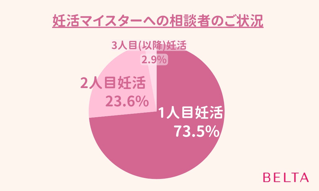株式会社ベルタ(本社:東京都港区)の運営する女性ライフステージブランドBELTAは、専門家による相談窓口に寄せられる、妊活に関連する相談内容の内訳※1を公開いたしました。BELTAでは、女性がライフステージ変化の中で抱える様々なお悩みにお応えするため、助産師や胚培養士、妊活マイスターなど16分野の専門家による相談サービスを行っています。「妊活マイスター」に寄せられた相談の内訳を見てみると、妊活中の女性が抱える様々な悩みや現状が見えてきました。