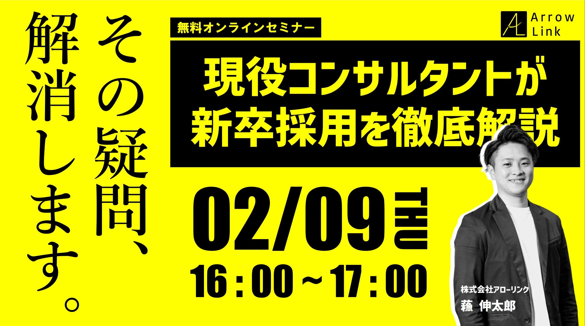 「その疑問、解決します。現役コンサルタントが新卒採用を徹底解説!」と題し、現役コンサルタントが新卒採用について徹底的に解説し、企業様の疑問や課題を解決に導くお手伝いをさせていただきます。