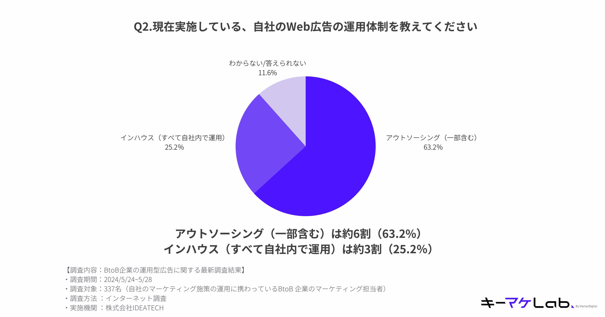 本調査の結果、63.2%のBtoB企業がWeb広告運用を外部委託していることが明らかになりました。