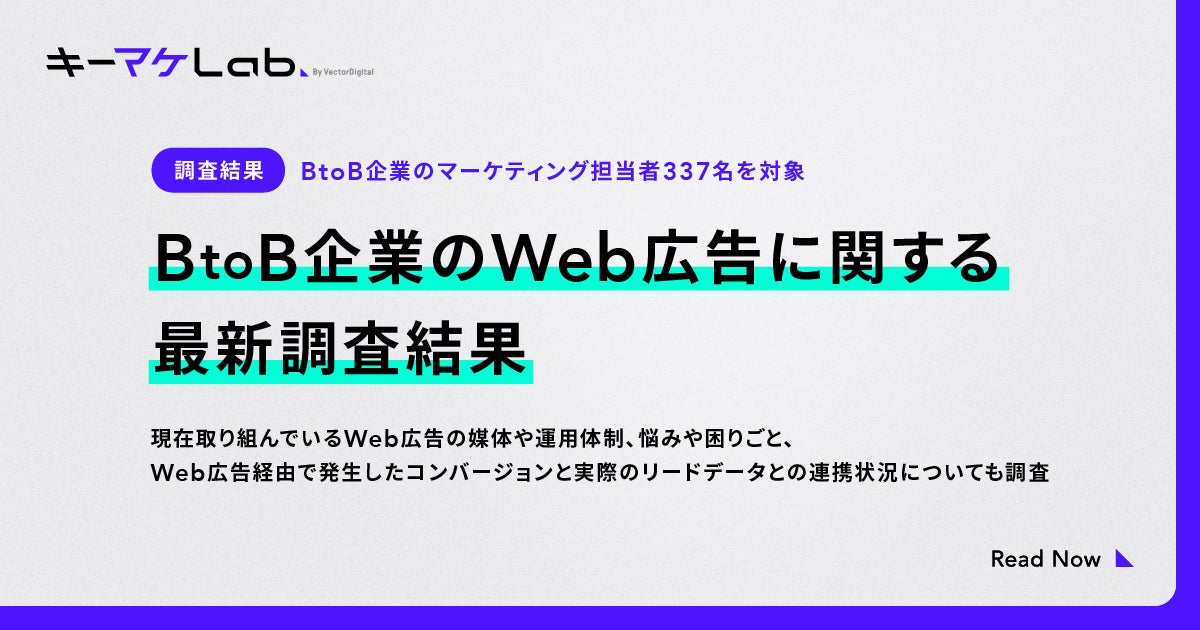 株式会社キーワードマーケティング(本社:東京都港区、代表取締役会長:滝井 秀典)が展開するメディア「キーマケLab(読み:キーマケラボ)」は、自社のマーケティング施策に携わっているBtoB企業のマーケティング担当者337名を対象に「BtoB企業のWeb広告運用に関する実態調査」を実施いたしました。