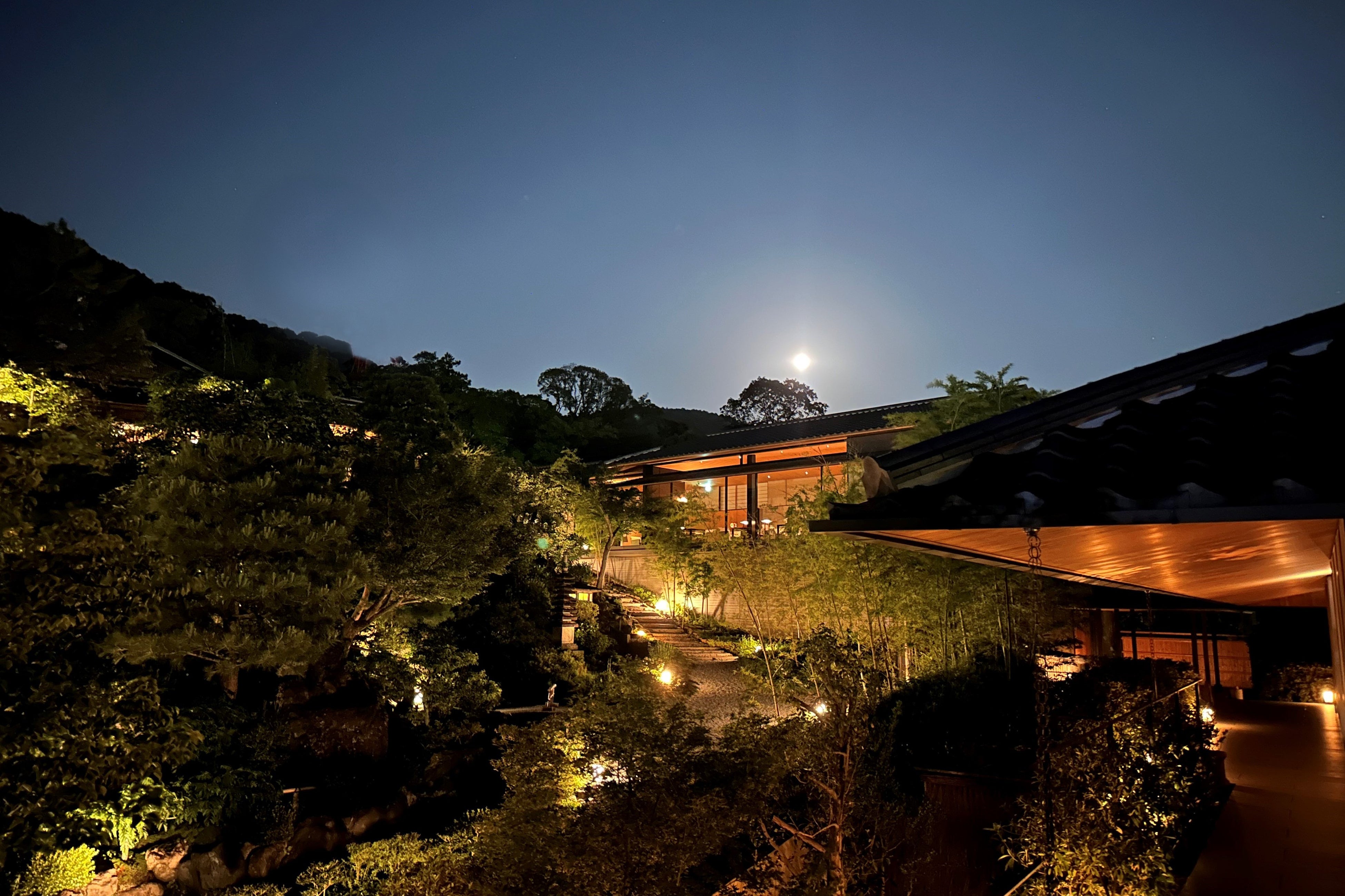 ・20:30 月を愛で、琴の演奏に耳を傾けながら楽しむ和菓子とお抹茶で風情を楽しむひととき-「翠紅館」の庭園にて