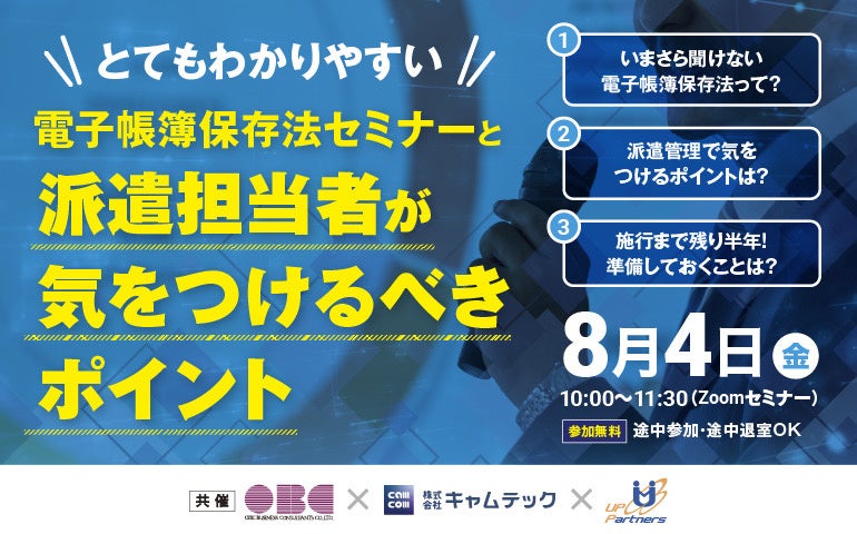 【派遣先企業様向けセミナー】電子帳簿保存法と、派遣担当者が気をつけるべきポイント について解説するセミナーを開催します |キャムテック