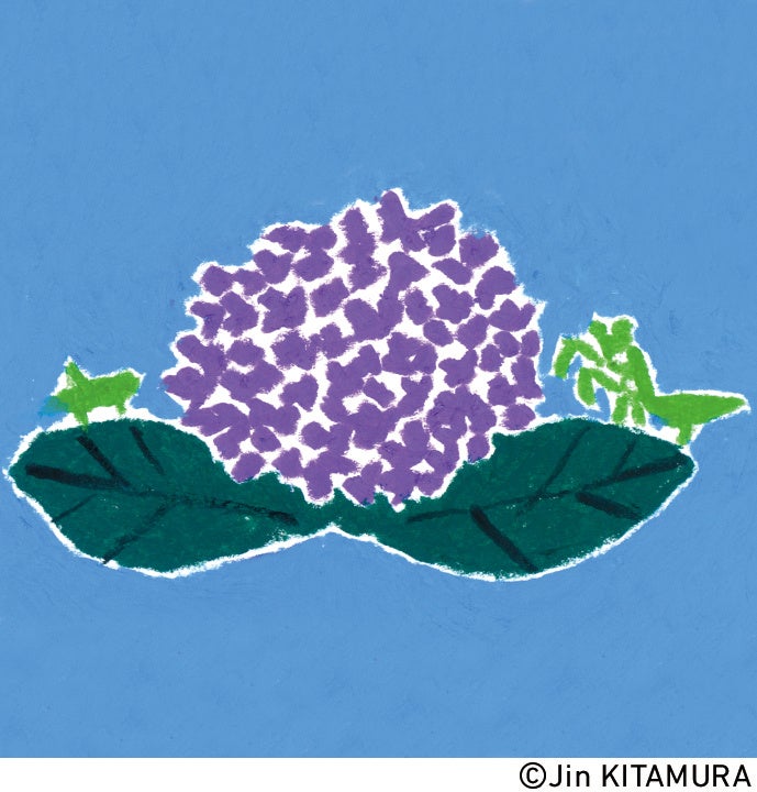と、たのんだ。あじさいは、役に立っていた。葉っぱの上には、バッタやかまきりがいて、葉っぱの下をのぞくと、セミの幼虫が羽化をしていた。あじさいの足元には、セミの幼虫が出てきた穴がたくさんあった。ここは、昆虫のあじさいホテルだ。