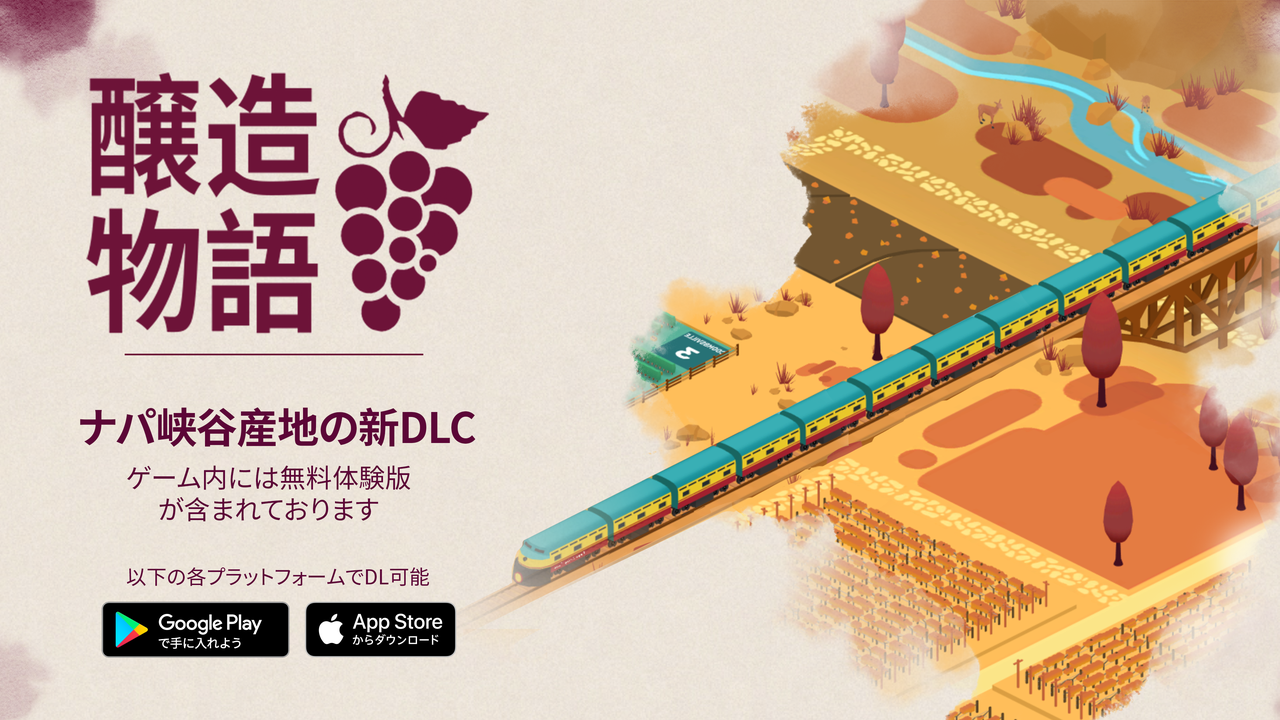 現在、『醸造物語 Hundred Days』はiOS及びAndroidの各ストアにて730円で販売されております。最新バージョンにアップデートすることで、ナパ・ヴァレーDLCを無料で体験することができます。また、DLCは370円で購入できます。