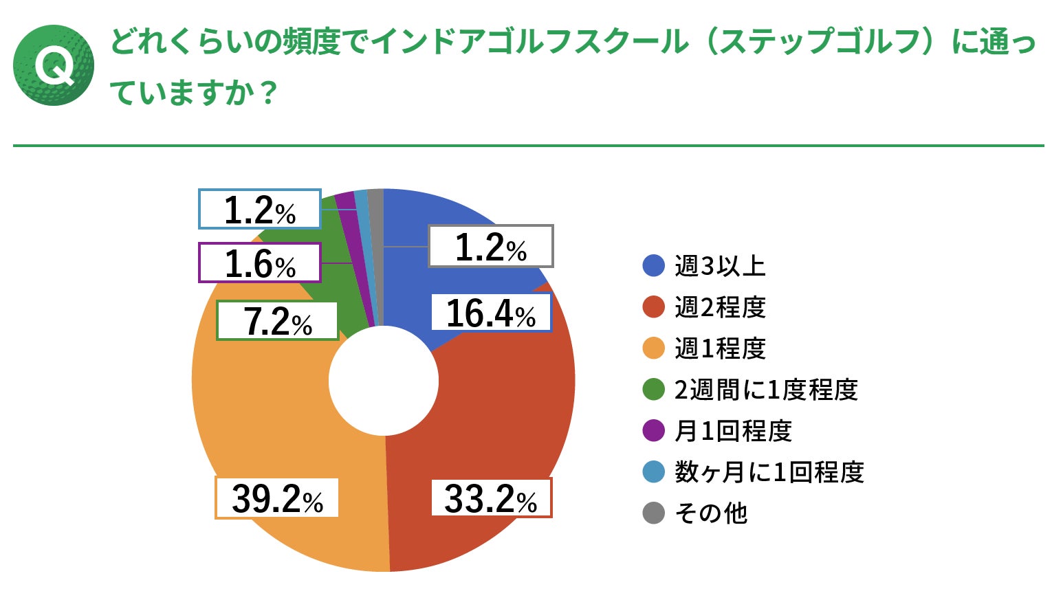 ▶インドアゴルフスクールに通う頻度、週1以上が約89%
