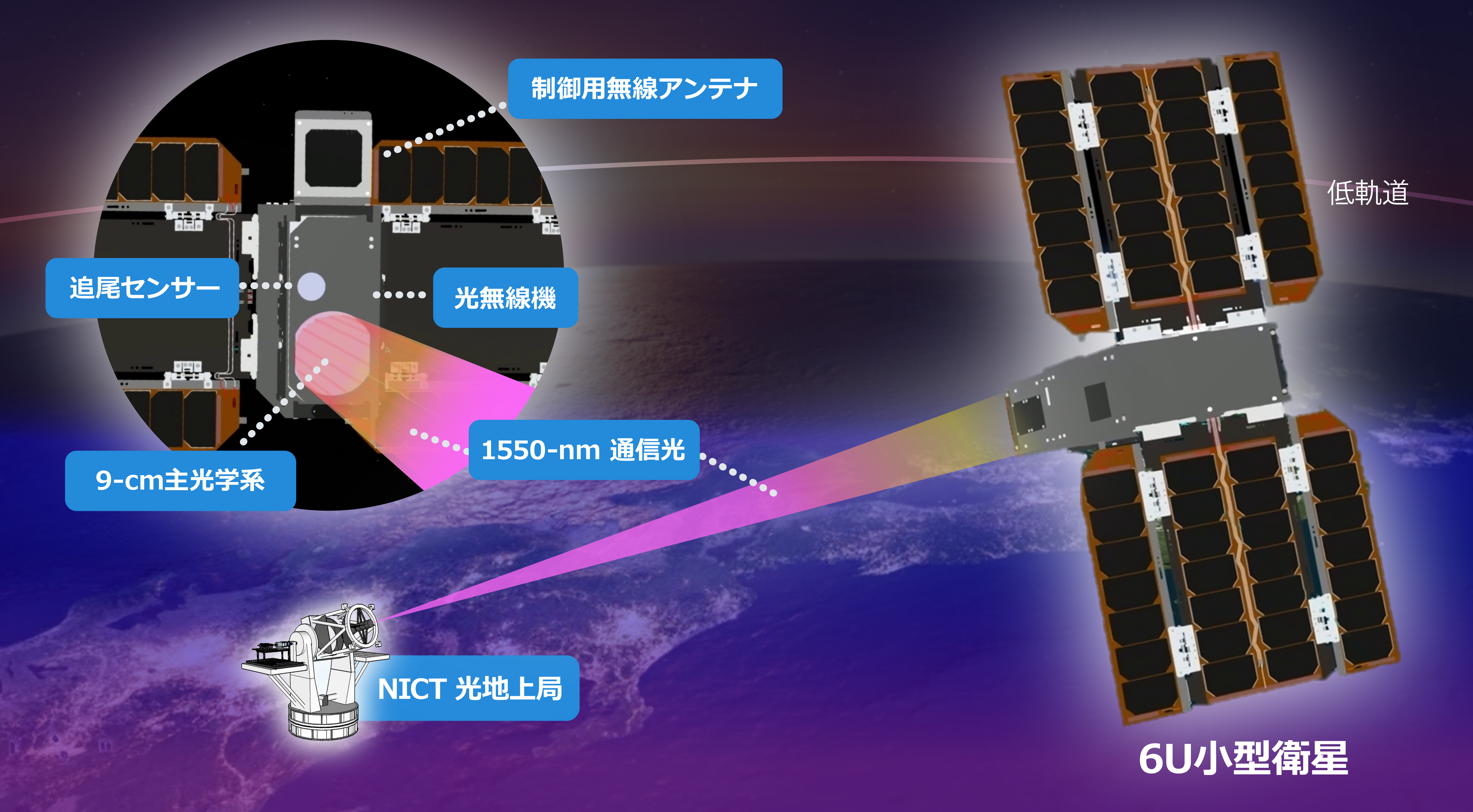 また、開発中の実証用の低軌道衛星は、6Uサイズ※の超小型衛星で、汎用性のある衛星バス設計をベースに、光無線通信に対応するために必要な高精度の姿勢制御技術を採用する予定です。