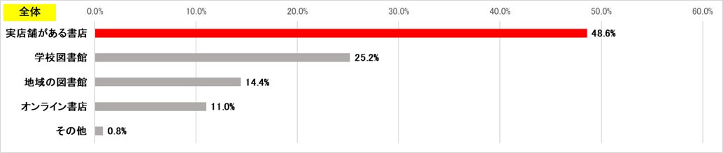 小学生は、1位「実店舗がある書店」、2位「学校図書館」、3位「地域の図書館」。