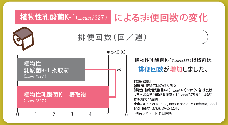 機能性関与成分「植物性乳酸菌 K-1(L.casei327)」が、おなかの調子を整え、お通じ改善をサポート