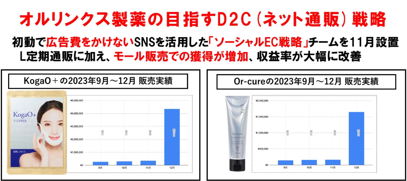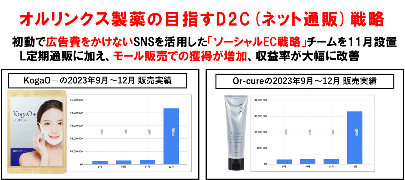 オルリンクス製薬にグループジョインしていただくことになったのは、D2C(ネット通販)事業主側の知見を得て、既存事業のD2C(ネット通販)のマーケティング支援サービスの質をさらに向上できることに加えて、連結決算で売れるネット広告社グループとしての売上・利益が上がると判断したからです。