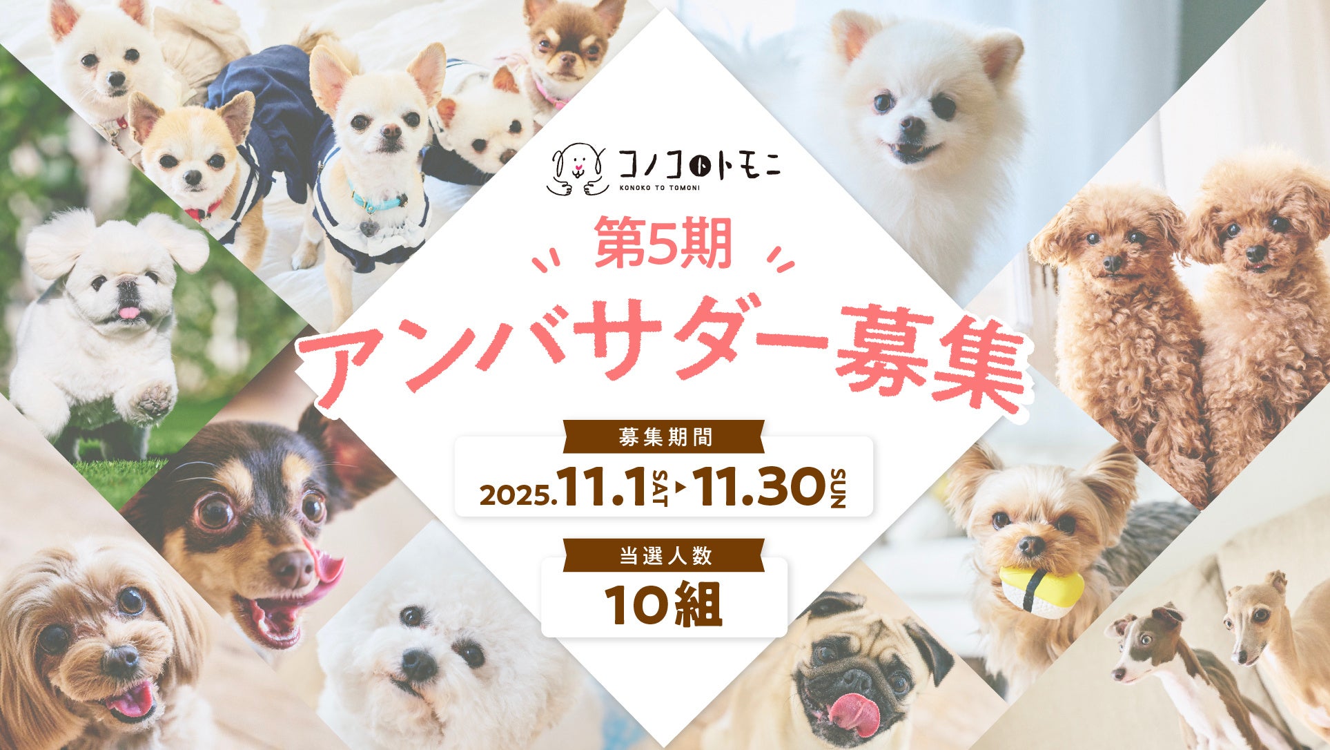 人間の食品と同レベルの国内工場で製造しているドッグフードやサプリメントなどを取り扱う『コノコトトモニ』( https://konokototomoni.com/ )を運営する株式会社ゆずず(本社所在地:福岡県福岡市、代表取締役:中島由華)はコノコトトモニ公式Instagramにて、2026年1月から1年間、一緒にコノコトトモニを盛り上げてくれる「第5期公式アンバサダー」を募集いたします。募集期間は2025年11月1日(土)~11月30日(日)です。