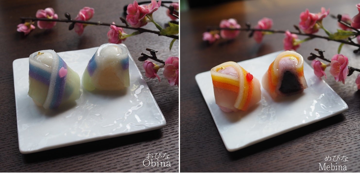 ●おびな・めびな【求肥餅にカラフルな羊かんを巻いてお内裏様にしました】