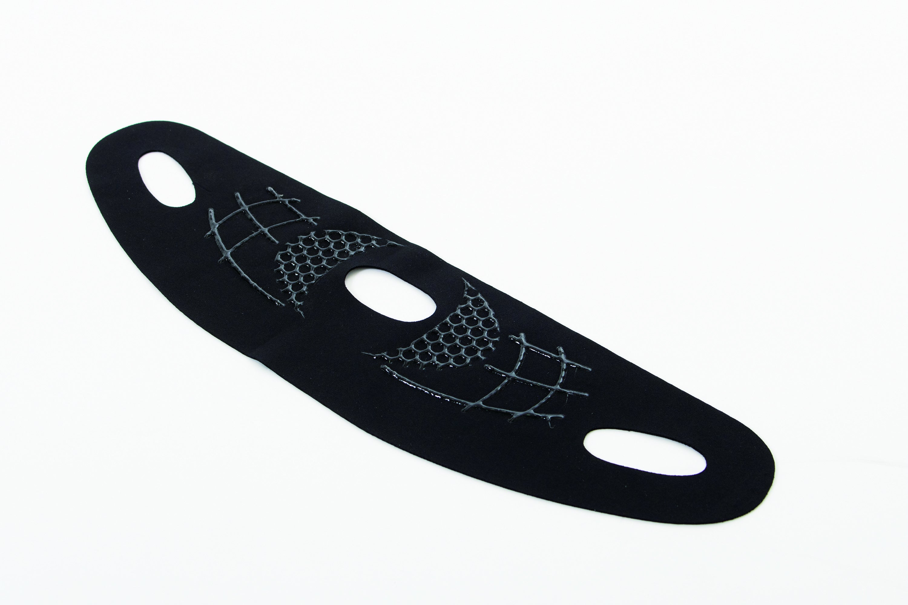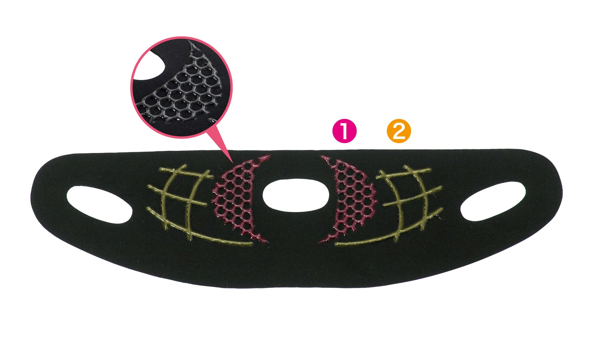 格子状のシリコンプリントがフェイスラインのお肉を全体的にキュッと持ち上げ!