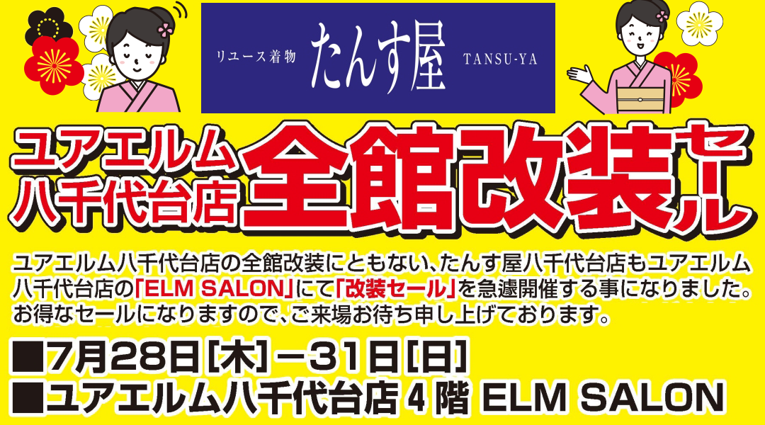 リユース着物「たんす屋八千代台店」がユアエルム八千代台店の全館改装に合わせてコラボセール!