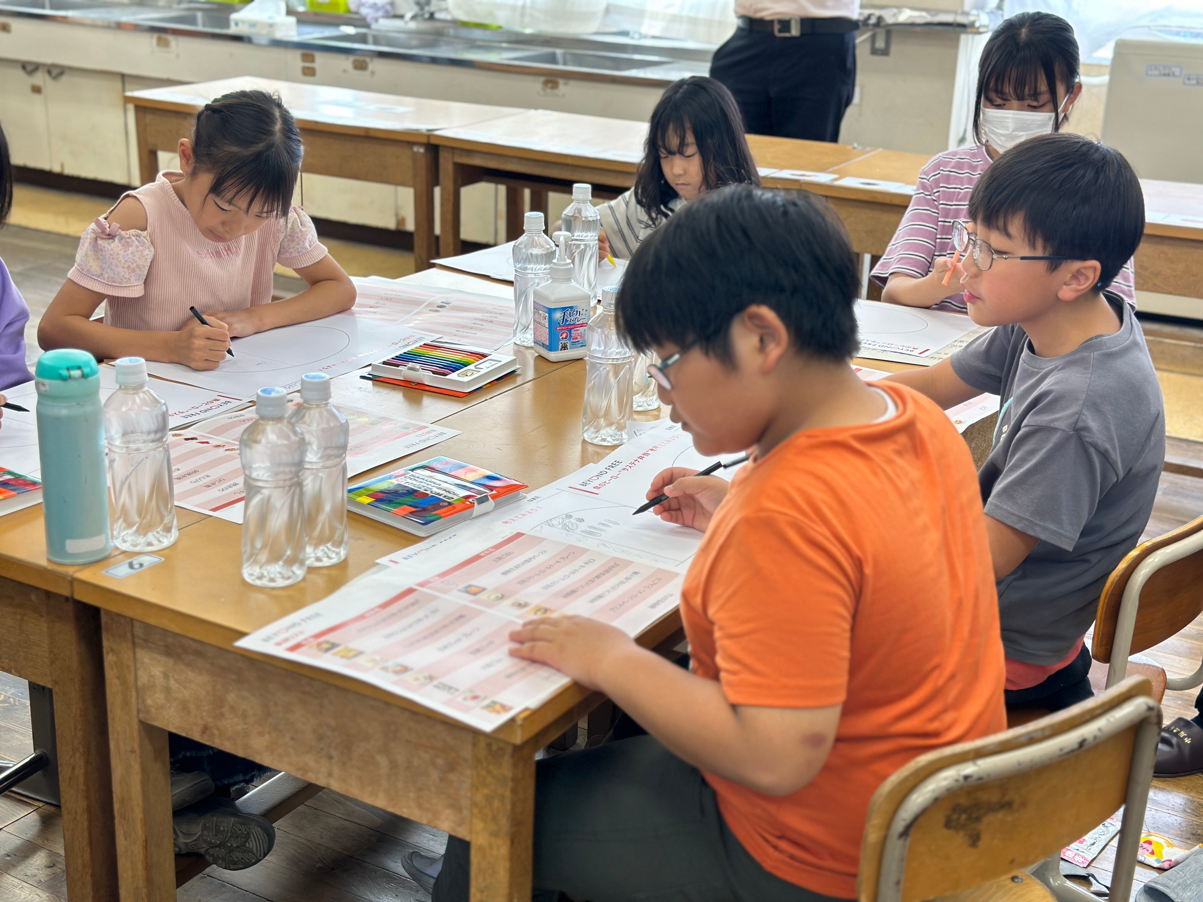 今回は、小学3~6年生18名に授業で学んだことを活かして、「食のヒーロー“サステナ弁当”」をテーマにオリジナル弁当を企画。生徒の自由な発想でオリジナルのお弁当を考え、スケッチ用紙に絵を描き、実際にそれをお弁当箱に詰めてもらいました。