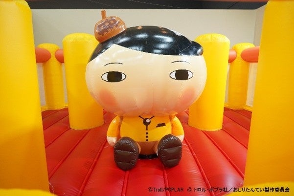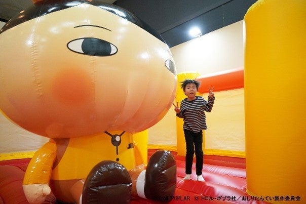 大きなおしりたんていのバルーンの周りを飛んで遊べるブースが登場!みんなで楽しく遊ぼう!