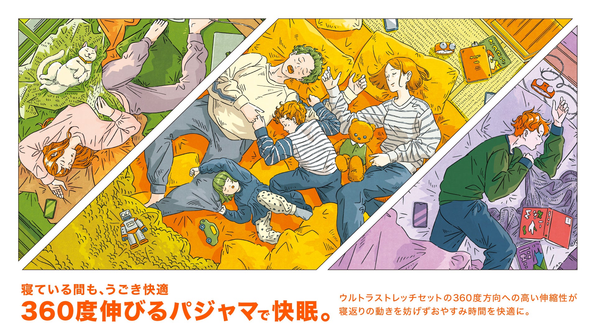 本キャンペーンでは、快適なおやすみ時間に重要なパジャマの伸縮性に着目し「寝返りを妨げない360度伸びるパジャマ」をお知らせするために、店頭や特設サイト、ユニクロ公式SNSを通じて情報発信します。 鮮やかなキャンペーンビジュアルによるパジャマコーナーの演出、「あるあるな寝返り」を楽しく探せる「ウルトラストレッチ寝返り」や、「UNIQLOギフトカード」が毎日抽選で当たるSNSキャンペーンも開催します。調査結果を含むこれらの情報は、特設サイト、またはユニクロ公式SNSにて公開しキャンペーンを強化していきます。