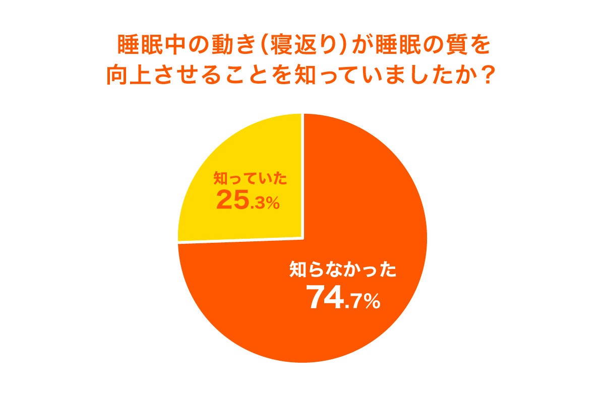 「寝返り」が睡眠の質を向上させることを「多少知っていた」「よく知っていた」と回答した人は25.3%に留まり、74.7%の人が「寝返り」が睡眠の質の向上に寄与することを知らないという結果になりました。睡眠と寝具の専門家ヒラノマリさんは、寝返りを打つことで寝具と体の間に溜まった空気を入れ替えることやずっと同じ姿勢でいることを回避するなど、質の高い睡眠には「寝返り」が重要と語っています。