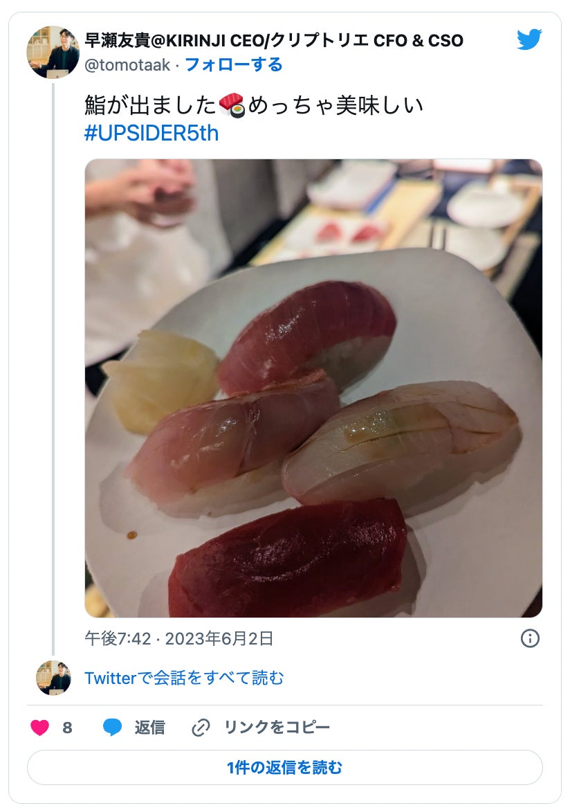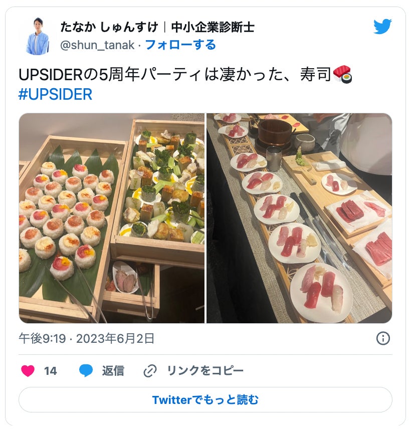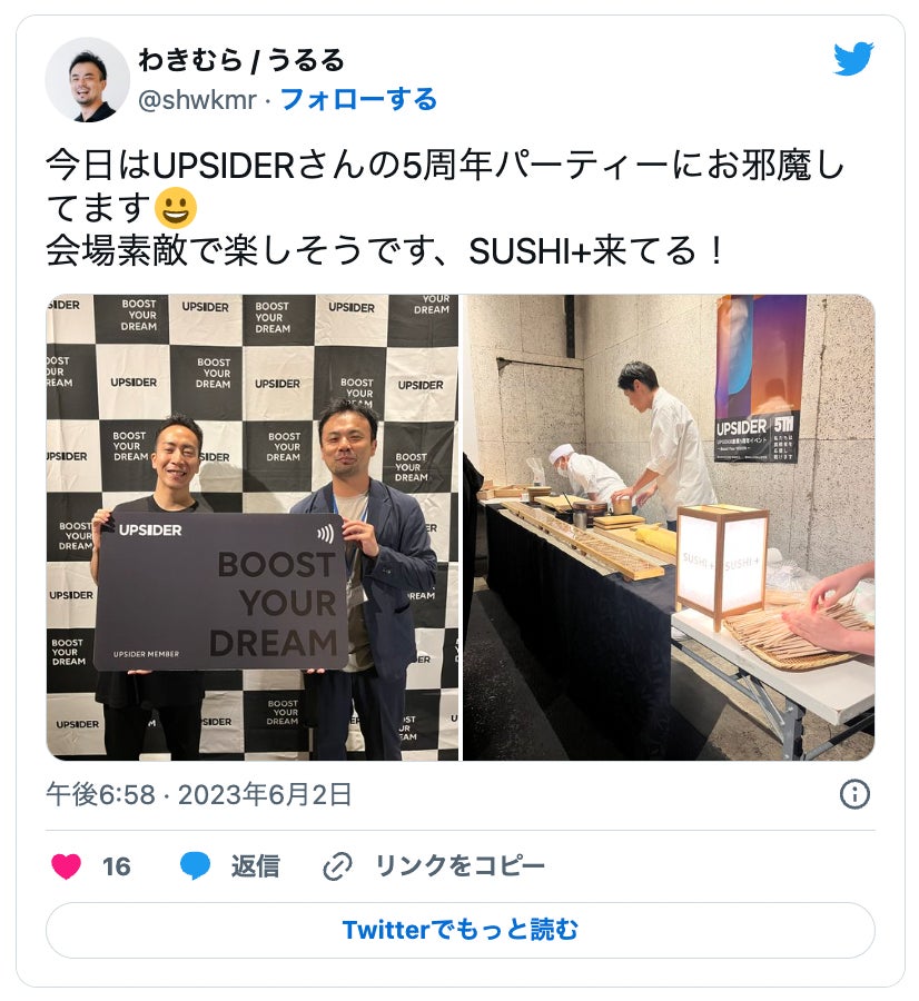 決済体験ブースやコンテンツの他に、当日はUPSIDERユーザーでもあるSUSHI+様をお呼びし、お寿司をご提供いただきました。