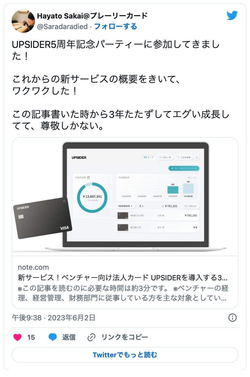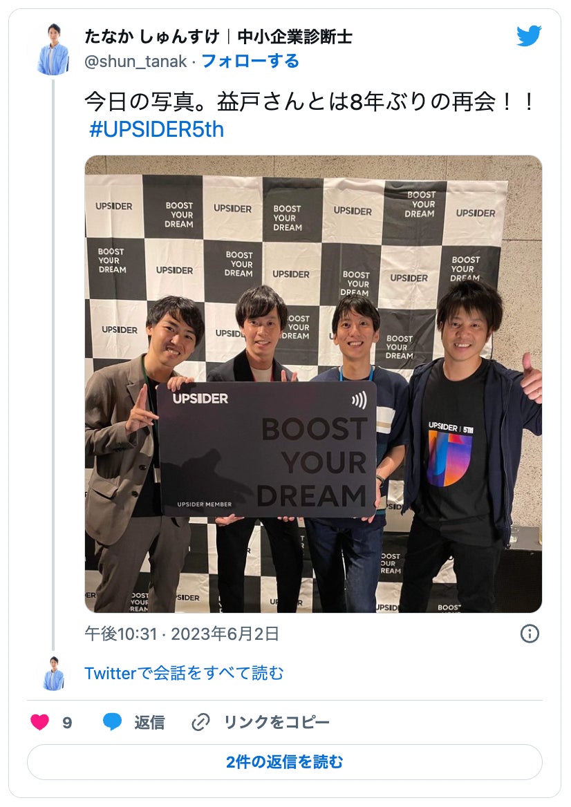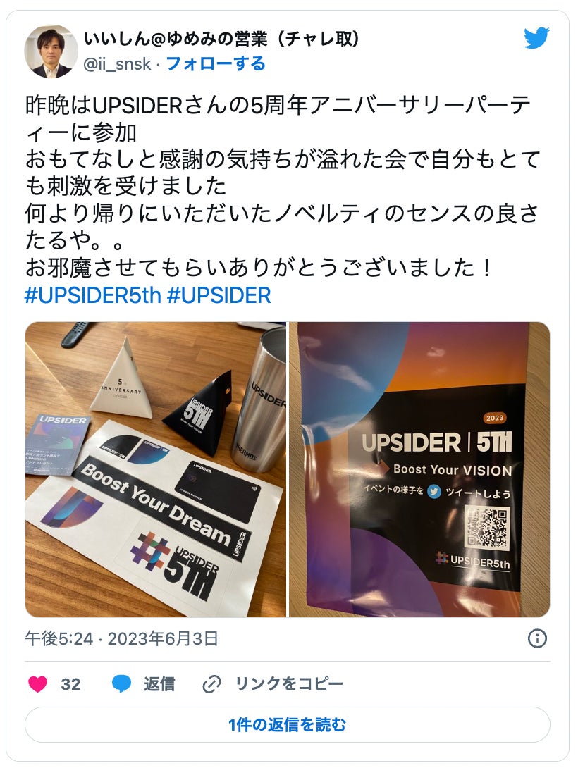 「ありがたいことに、UPSIDERはサービス開始から2年半で、合計2万社以上の挑戦者の方々と同じ船に乗らせていただいています。私たちへの信頼と、これまでのパートナーシップに心から感謝を申し上げます。」