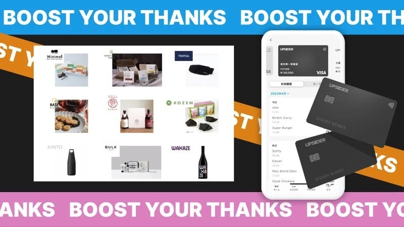 ユーザーの皆様の商品をUPSIDERカードにて実質無料でご購入いただき、ご家族や従業員の皆様など、日頃の感謝を伝えたい方にプレゼントいただければという思いを込めました。