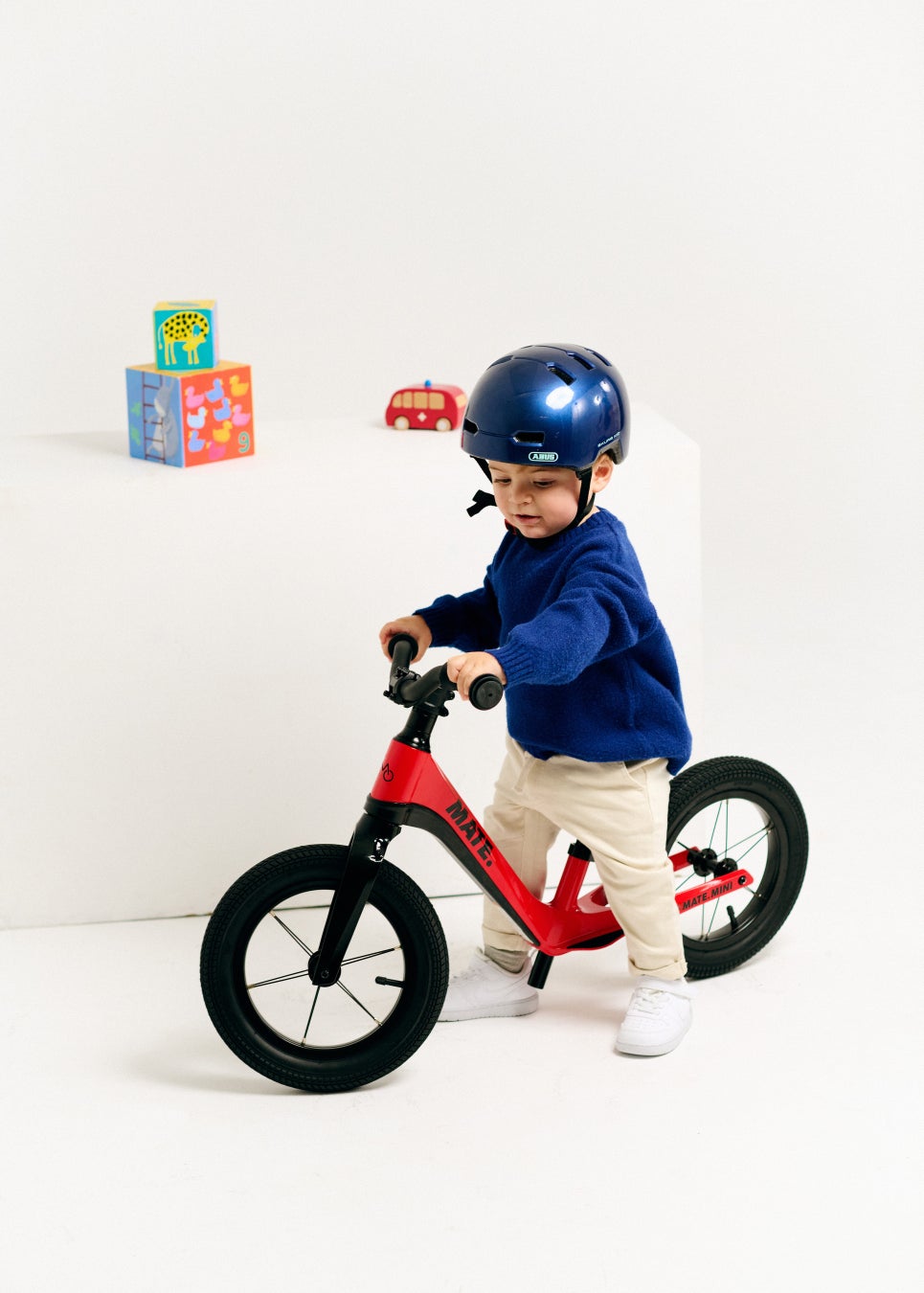 MATE MINIは、親子でもMATE.BIKEをお楽しみいただけるように、ブランド初のキッズ向けキックバイクとしてデザインされました。ブランドのレガシーを反映したキャッチーな配色と、フレームに配置されたMATE.ロゴが、自転車文化の継続的な発展を担う次世代の子ども達の自転車デビュー体験を後押しします。
